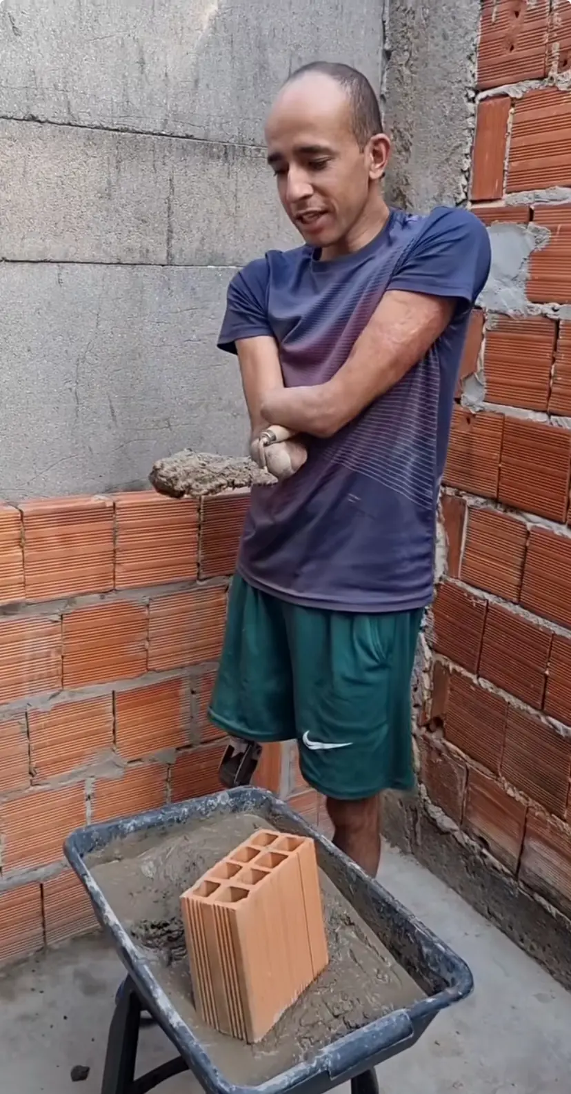 Cleber Nunes, de 36 anos, viu a vida mudar após sofrer uma descarga elétrica de 13.800 volts. O acidente, ocorrido em março de 2013, o deixou sem as duas mãos e uma das pernas. Hoje, mais de uma década depois, ele segue superando desafios: alimenta o filho com a própria boca, sonha com uma prótese e está construindo sozinho a casa onde mora com a esposa e os quatro filhos, em Sobradinho II, no Distrito Federal.