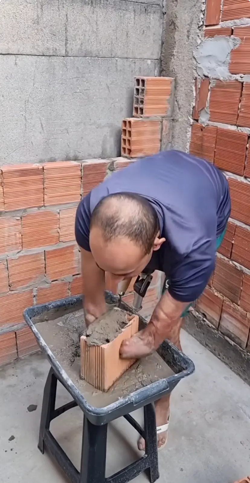 Sem condições financeiras para concluir a construção da residência, ele utiliza o pouco que sobra do orçamento familiar para levantar, aos poucos, os cômodos onde deseja oferecer mais conforto e acessibilidade para a família. O projeto inclui adaptações que facilitarão sua mobilidade e autonomia.