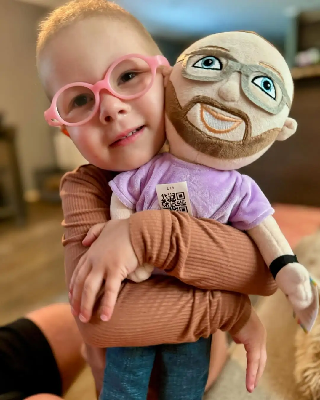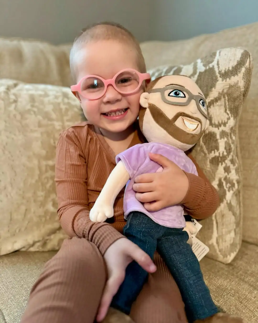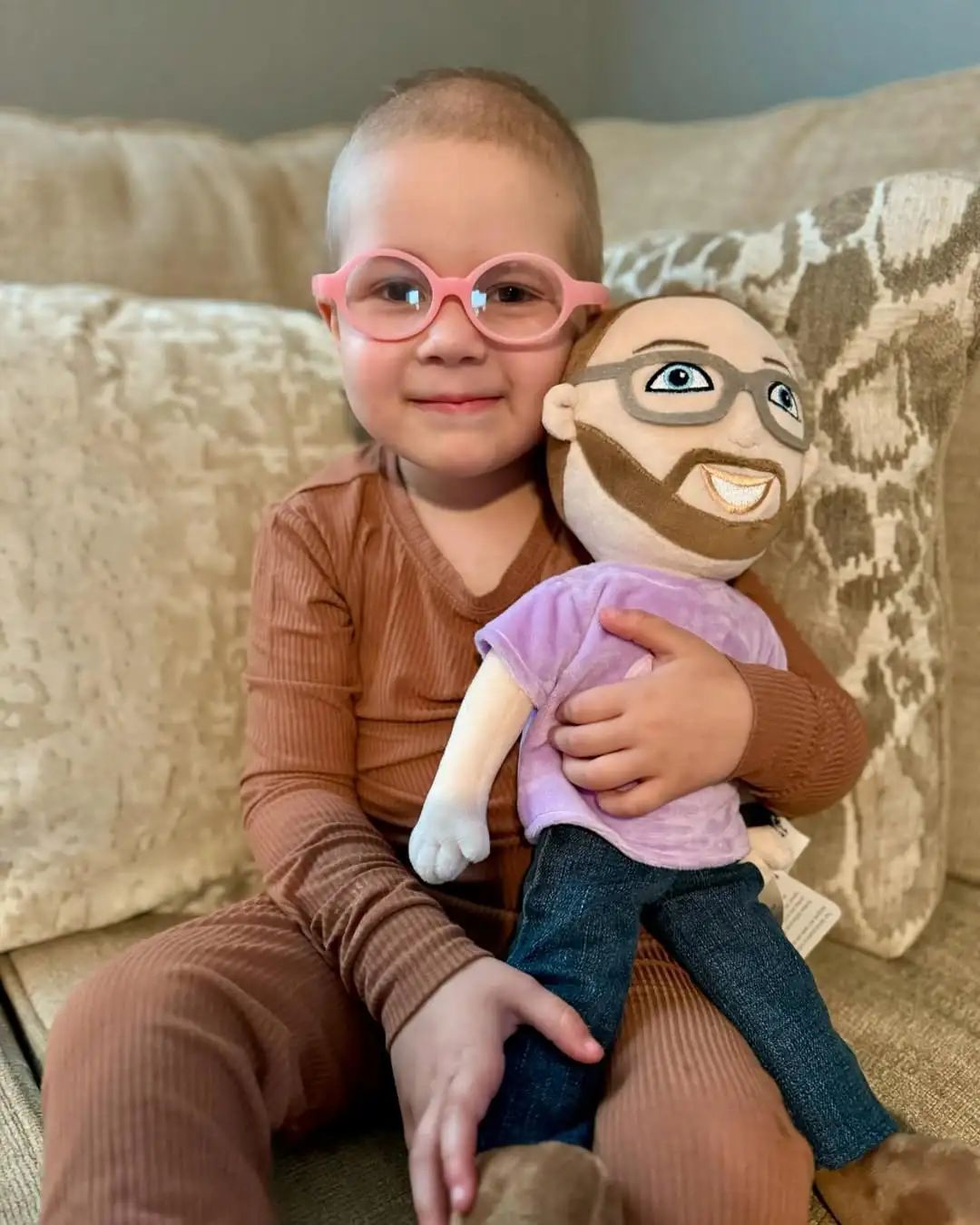 Durante o período de internação, um boneco personalizado com a voz do pai ajudou a menina a ter mais forças e a suportar a distância. O presente foi enviado pela organização Budsies, que também enviou uma versão da boneca para Hayden. “Ela queria o pai, mas ele não podia estar ali. Então ela carregava o boneco para todos os lados. Dizia: ‘Olha, posso levar meu papai comigo hoje’. Ela ainda dorme com o boneco todas as noites”, contou Chelsie.