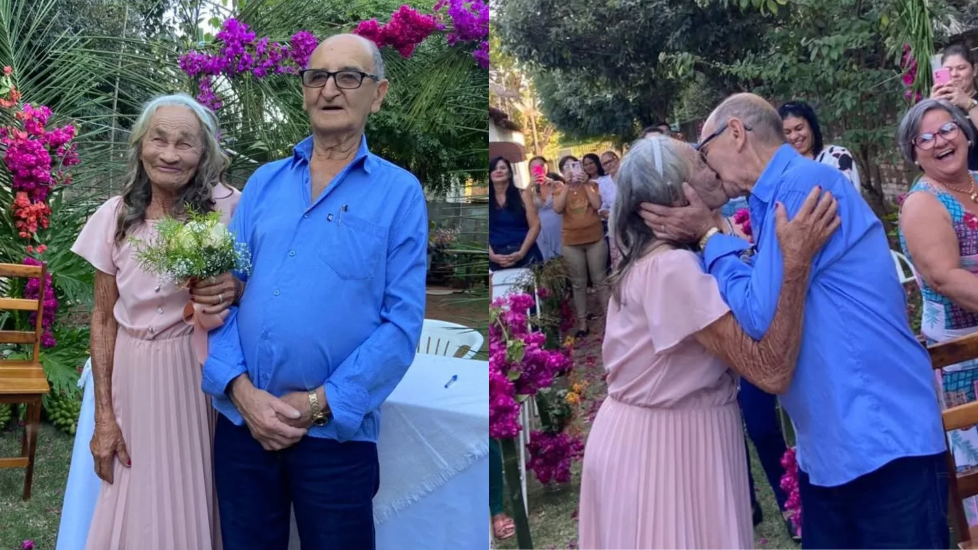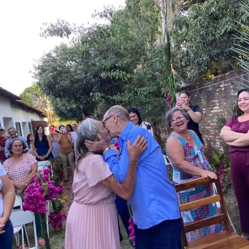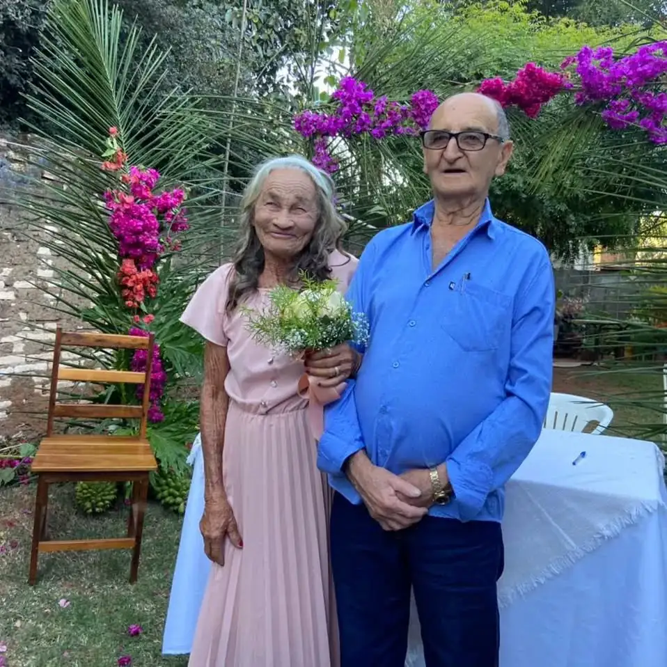 Maria Gentil, de 92 anos, e Sebastião Valim, de 78, oficializaram a união em 2022 no Condomínio Social do Idoso, em Caçu, Goiás, após quatro meses de namoro. O casal, que não queria apenas “morar junto”, decidiu antecipar o casamento e celebrar a nova fase da vida em cerimônia organizada na própria casa de repouso.