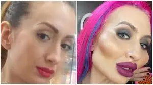 A modelo e influenciadora ucraniana Anastasia Pokreshchuk, conhecida por ostentar as “maiores bochechas do mundo”, voltou a chamar atenção nas redes sociais após fotos antigas de sua adolescência viralizarem. As imagens mostram Anastasia aos 16 anos, com aparência natural, cabelos cacheados e maquiagem leve — um contraste gritante com seu visual atual, marcado por preenchimentos faciais extremos, lábios volumosos, queixo pontudo e mandíbula quadrada.