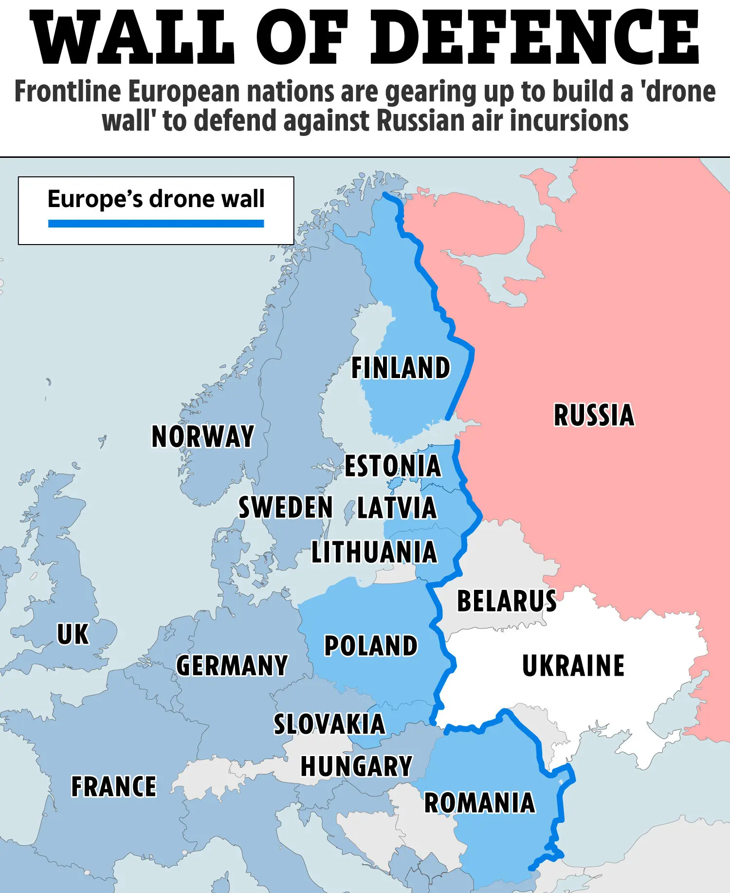 O plano foi acordado por ministros da Defesa de nações da linha de frente da OTAN, como Polônia, Romênia, Bulgária e os países bálticos. A Ucrânia, embora não faça parte oficial do projeto, está contribuindo com sua expertise em combate a drones, adquirida ao longo do conflito com a Rússia.