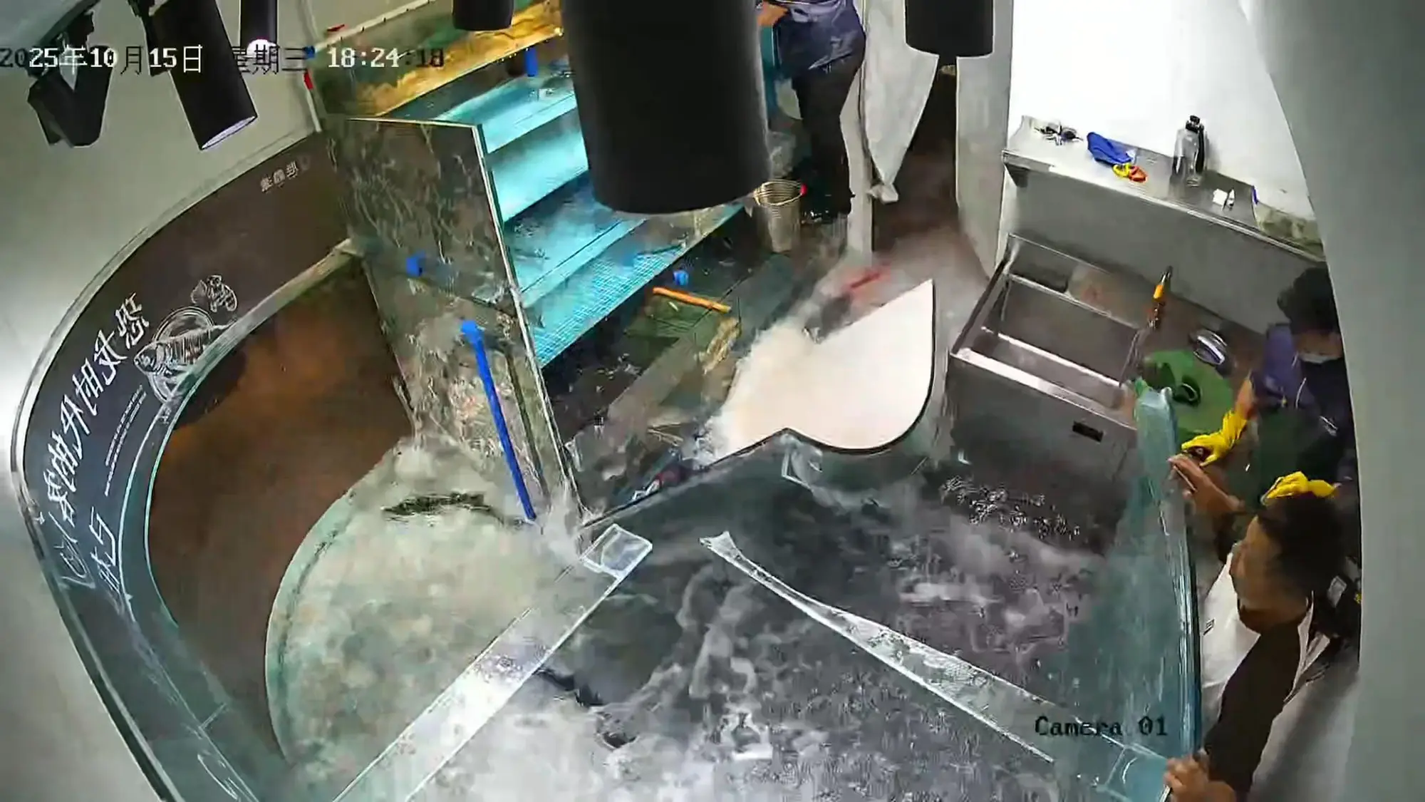 Nas imagens, é possível ver os trabalhadores seguindo com suas tarefas normalmente até que o tanque de plástico se rompe, espalhando água por todo o chão e causando um verdadeiro caos. Os peixes, liberados repentinamente, se espalham pelo restaurante, enquanto os funcionários tentam reagir à situação inesperada.