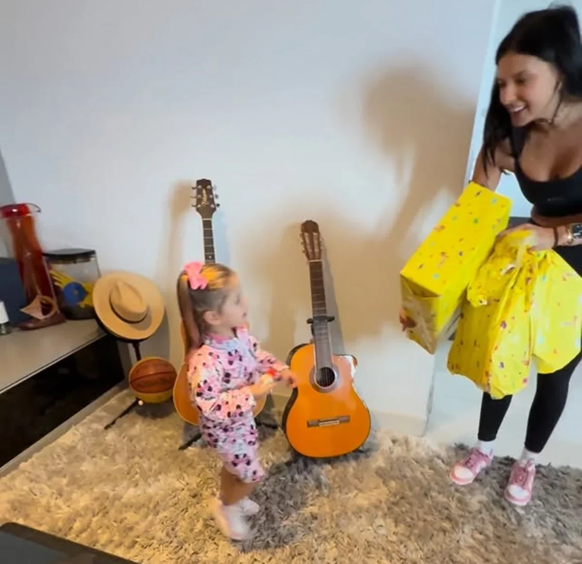 Em vídeos compartilhados nas redes sociais, é possível ver a artista entregando brinquedos aos pequenos enquanto Zé Felipe incentiva as filhas a agradecerem: “Maria Alice, agradece a tia Ana. Fala obrigada, Marias”. O gesto carinhoso reforçou a boa relação entre a nova namorada do cantor e seus filhos.
